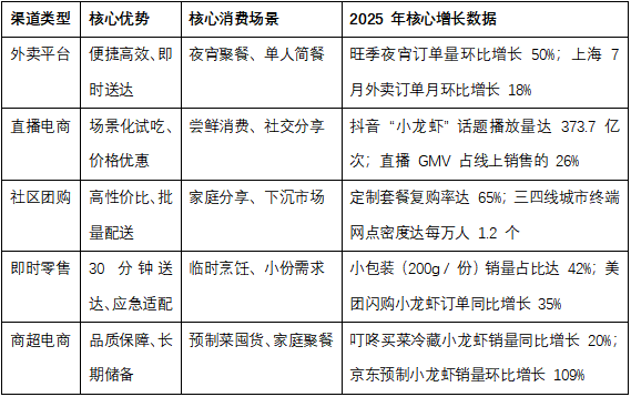 线上渠道成为增长核心引擎,外卖、即时零售、社区团购形成互补,社区团购在下沉市场订单占比从2022年15%升至28%,美团闪购小龙虾订单同比增长35%,直播电商GMV占线上销售26%,抖音话题播放量达373.7亿次,既拓宽了销售边界,也降低了品牌获客成本。线下业态持续优化,20-50平米的“小龙虾+热卤+炸串+茶饮”外带外卖专营店存活率较传统门店高20%,全时段运营品牌销售额提升40%,渠道形态的轻量化、复合化适配了房租人工成本上涨的行业环境,提升了单店盈利能力。(见表5)