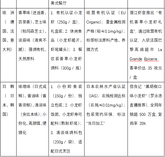 1.产品创新深耕场景,绑定加工端协同升级:聚焦“健康化+区域化+主食化”三维创新,联合加工企业开发适配餐饮场景的预制套餐(如一人食小龙虾盖浇饭料理包、家庭分享装调味虾),借力加工端休闲产品(同比增长67.9%)、清水虾(同比增长102.75%)的产能优势,丰富菜品形态。针对不同区域精准适配,华东强化“鲜醇”味型(如黄酒醉虾);华南主打低油低盐的鲜活产品;西南深化“小龙虾+火锅”融合底料,下沉市场聚焦100元内高性价比套餐。同时布局低嘌呤、无添加防腐剂的健康产品,呼应消费者对“干净配料表”的核心需求。