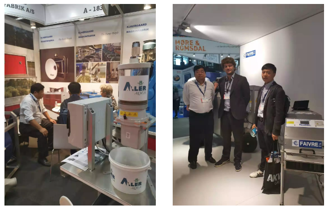 我团代表参观了展会并重点与三文鱼养殖设备、技术、渔船、饲料供应系统、网衣等养殖设备设施企业进行了沟通交流。