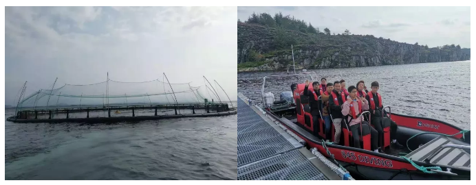 展会结束后,代表团前往卑尔根参观三文鱼博物馆和渔场,团员们近距离感受了挪威海水大网箱养殖技术和设备,普遍表示非常震撼,感受到了差距,也更加激发了师夷长技以自强的决心和动力。此次参观的渔场拥有7个周长120米,深度35米的大网箱进行三文鱼的养殖,网箱同时配有自动投喂系统、死鱼收集系统、自动清理系统和20%的清道夫,每个网箱可以容纳10万尾鱼苗,整个渔场三文鱼年产量可达8000吨。