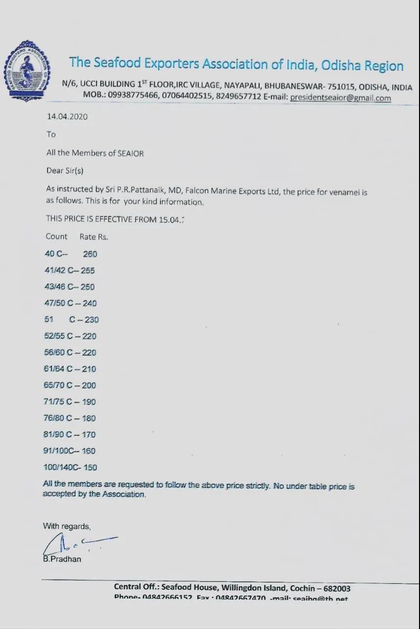 加工厂生产瓶颈对原材料价格产生直接影响。据印度海产品出口协会的数据,奥里萨邦白虾出塘价几乎跌至2018年价格崩盘时期的水平,40条/公斤规格白虾最低价为INR 260/kg($3.40/kg),50条/公斤价格为INR 230/kg,60条/公斤价格为INR 210/kg,70条/公斤价格为INR 190/kg。