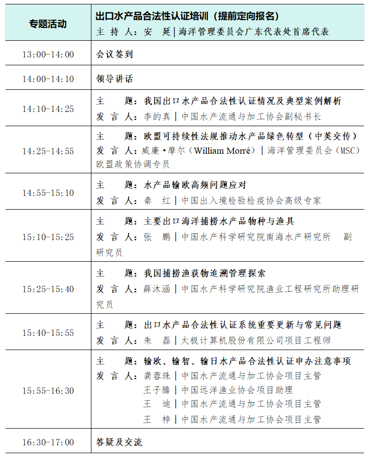 专题活动丨出口水产品合法性认证培训